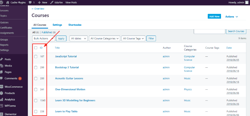 - View Course IDs in the Admin Panel: